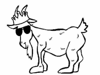 The mark consists of a stylized goat wearing a crown and sunglasses on its head. The stylized goat is standing.