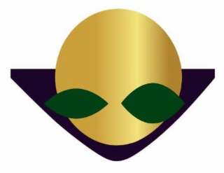 The mark consists of HUNTER GREEN ALMOND SHAPED ''EYES'' ON TOP (IN FRONT) OF A METALLIC GOLD CIRCLE, ON (SITTING IN/IN FRONT OF) A DEEP PURPLE, DOWNWARD FACING TRIANGLE (AiB3).