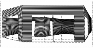 The mark consists of a retail store interior and exterior with chrome pipping that covers the exterior façade and interior wall panels. The corners of the walls are curved. The broken lines are not part of the mark and serve only to show the position or placement of the mark.