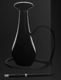 The mark consists of the image of a stylized hookah design with a tear drop shaped base design and disk-like shaped top design and a hose exiting the right side of the base and wrapping around the stylized hookah.