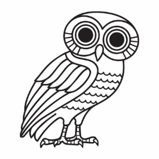 The mark consists of a stylized owl with its body facing left and its head facing forward.