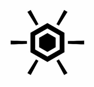 The mark consists of a hexagon at the center with a concentric hexagonal border. Radiating from the center are six lines of varying thickness, positioned at regular intervals around the outer border of the hexagon, resembling a sun and rays or beams of light.