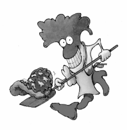 The mark consists of a cartoon character in the general shape of Italy, with large hair, wide eyes, and a big grin, wearing an apron and holding a pizza peel with a stylized pizza.