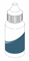 The mark consists of a design applied to the front portion of a three dimensional bottle being packaging for the goods. The design consists of a dark green-blue stripe that fades to a combination of white and dark green-blue and then fades to dark green-blue again. Below is another line that is dark green-blue on the right and fades to light green-blue on the left, and this line is above a thick green-blue stripe. All of the stripes begin higher on the right and curve down and around at an angle to the left. The broken lines depicting the bottle shape and cap are used solely to indicate placement of the mark and are not part of the mark.
