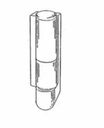 The mark consists of a three-dimensional configuration of a hinge that has a generally bullet shaped barrel having a generally flat top end and a generally rounded bottom end wherein the bottom end is incorporated into a first mounting flange that extends the entire length of the barrel and a second mounting flange extending from an upper portion of the barrel.