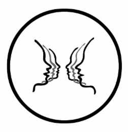 The mark consists of a circle within which are the designs of two groups of three overlapping faces facing towards each other, creating the overall shape of a butterfly.