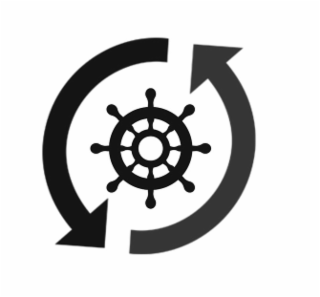 The mark consists of a stylized graphic of a marine helm wheel with two concentric arrows formed around a circumference of the marine helm wheel.