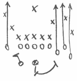 The mark consists of x's and o's and arrows arranged in a design similar to a sports play.