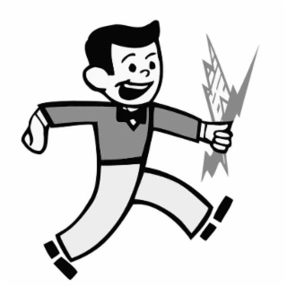The mark consists of the stylized design of a man running, wearing a bow tie, and holding two lightning bolts in his left hand.