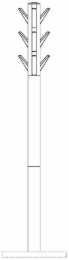 The mark consists of a three-dimensional configuration of a coat rack comprising of a cylindrical pole extending upward from the center of the base with three hooks in the shape of truncated pyramids extending outward from each side of the pole at an angle. The broken lined circular base is not claimed as part of the mark and intended only to show the overall design of the mark.