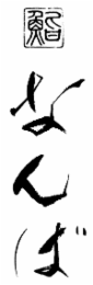 The mark consists of four Japanese characters appearing vertically: the first one meaning "SUSHI" in a stamp form and the remaining three is a name of a restaurant "NAMBA" in a calligraphy form.