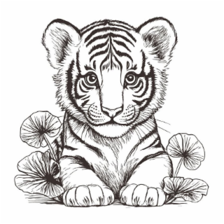 The mark consists of a stylized design of a tiger sitting on top of four stylized leaves.