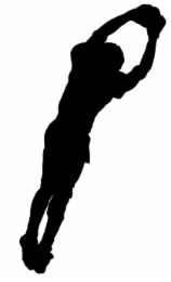The mark consists of silhouette of a football player, a receiver, catching a thrown pass, and stretching to get both feet inbounds by tapping his toes.
