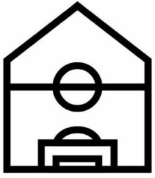 The mark consists of a pentagon with two right angles at the bottom and three obtuse angles at the top half with a horizontal line at the midway point from top to bottom and a circle around the midpoint of the horizontal line and inside the bottom quarter of the pentagon a pair of half rectangles, one inside the other, and a half oval on top of the larger half rectangle.