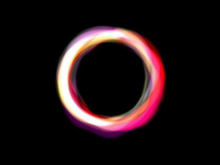 The mark consists of a circular blurry halo composed of white, pink, red and yellow on a black background.