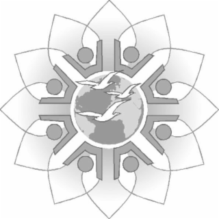 The mark consists of an image of a flower, within the flower there is a image of people with arms up lining the circle of the flower, lining the people there is a shape of earth with three doves flowing over it.