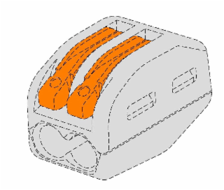 The mark consists of the colors gray and orange as applied to electrical connectors. The matter shown in broken lines shows positioning only and is not part of the mark..