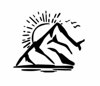 The mark consists of several lines forming the design of a sun rising from behind the left side of a mountain. To the right of the sun and over the mountain are three stylized birds.
