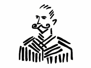 The mark consists of A black-and-white line drawing of a bust view of a man with a mustache.