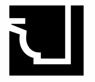 The mark consists of a solid square shape with a contrasting outline of a gutter shape within the square shape.