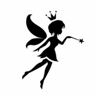 The mark consists of a rightward facing tooth fairy, wearing a crown and a dress, having curly hair, holding a wand with a star at the end of the wand.