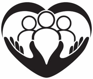 The mark consists of a stylized image of a heart the bottom 'v' shape of the heart is comprised of two open hands. Three human figures appear in the middle of the heart.
