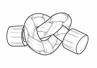 The mark consists of a configuration, namely, a three-dimensional knot with caps at each end, affixed to a clasp on the goods.