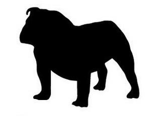 The mark consists of the filled in silhouette of an English bulldog.