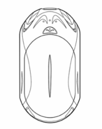 The mark consists of an oblong design with another oblong within, an elongated groove representing a vertical indentation in the middle, and curved lines and shapes that suggest eyes, nose, and a mouth at the top of the oblong.