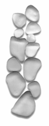 The mark consists of the image of twelve pieces of oval and rectangular sea glass in varying sizes appearing vertically with five pieces of sea glass in one vertical line, six pieces of sea glass in a second vertical line appearing next to the first, with both lines of sea glass terminating at a single piece of sea glass at the bottom of both lines.