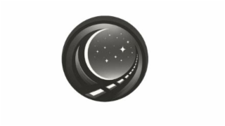 The mark consists of A large circle with (a) a small circle inside of the large circle that includes a night sky and stars, and (b) a crescent figure inside the large circle, and (c) dotted lines running along the right side of the large circle that represent road lines.