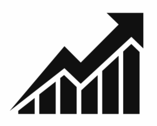 The mark consists of a column chart with six columns that increase and decrease in two steps with an arrow above the columns from left to right starting from a point and ending in an arrow.