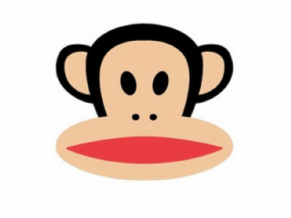 The mark consists of a beige wide mouth monkey with a black outline around the head and ears, black eyes and nose, and a red mouth.