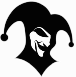 The mark consists of a stylized head of a smiling harlequin wearing a two-point jester hood.