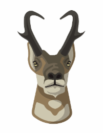 The mark consists of a brown, tan, and cream colored elk head, with black and dark gray antlers, black and dark gray nostrils, a black mouth, and yellow-brown colored eyes with black pupils and black eyelashes.