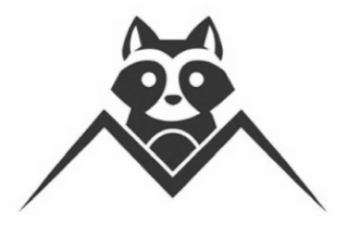 The mark consists of a stylized raccoon design appearing between the two peaks of a stylized mountain range.