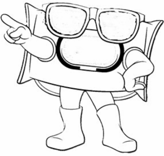 The mark consists of a character wearing socks and sunglasses, the character's body in the form of product packaging, and the left arm is raised.
