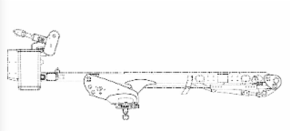 The mark consists of the overall three-dimensional configuration of the combination of elements on a lower boom on a machine. One element is a curved turret side plate. A second element is a rounded lift cylinder plate with two concave sides of different length. A third element is a knuckle plate with three rounded sides. The matter shown in broken lines depicting the elements of the machine are not claimed as part of the mark. The white background is not claimed as a feature of the mark.