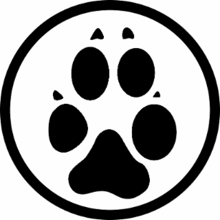 The mark consists of paw print inside a circle where the paw is made up of 1 large pad, 4 small pads, and 4 claws, each of the claws located adjacent to and above one of the small pads, each of the small pads shaped like an oval, and the large pad having a triangle-like shape, a first pair of small pads located above a second pair of small pads which are located above the large pad, and the second pair of small pads being spaced apart farther from each other than the first pair of small pads.