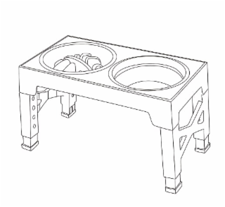 The mark consists of a rectangular pet feeding station consisting of two bowls in a stand.