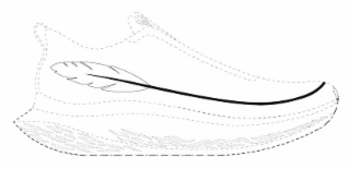 The mark consists of a stylized depiction of a feather and long quill along the side of a shoe. The broken lines show the position of the mark and are not claimed as part of the mark.