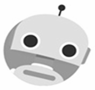 The mark consists of the head of a robot with two eyes and one ear, and an antenna on the top of the head.