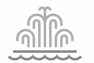 The mark consists of a depiction of a water fountain, comprised of 4 arches cascading downward, with one arch on both the left and right sides and two larger arches that meet in the middle to merge. Within the center of the merging arches, is a depiction of water rising and spouting from the top. The bottom portion of the mark consists of a platform like bar underneath the fountain, with a single wave directly below the bar.
