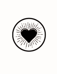 The mark consists of a solid heart design centered in a circle with lines radiating out from the heart.