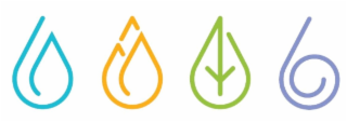 The mark consists of the following: four stylized droplets with the first in light blue, the second in orange, the third in light green, and the last in purple. The white in the mark represents merely background and is not claimed as a feature of the mark.