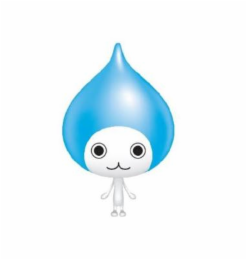 The mark consists of an anthropomorphic blue water drop with black eyes and a mouth on a white circle at the bottom of the drop. Underneath the drop is a grey and white body.