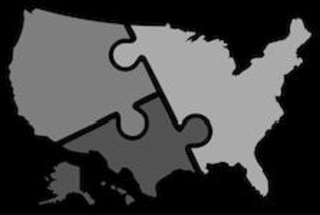 The mark consists of the design of a map of the United States consisting of three puzzle pieces.