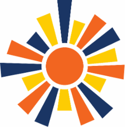The mark consists of an orange circle with multi-colored beams extending radially therefrom in the colors of orange, yellow and blue.