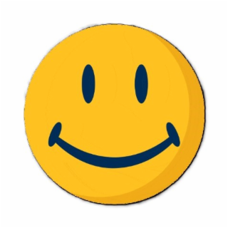 The mark consists of a round yellow smiling face with dark blue eyes and dark blue smile, with darker yellow on the right side of the mark representing shading, and where the smiling face is outlined in dark blue.