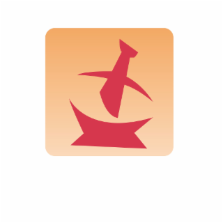 The mark consists of a stylized red pestle positioned above a stylized red mortar, set against a rounded square background with a gradient fill from light orange to peach.